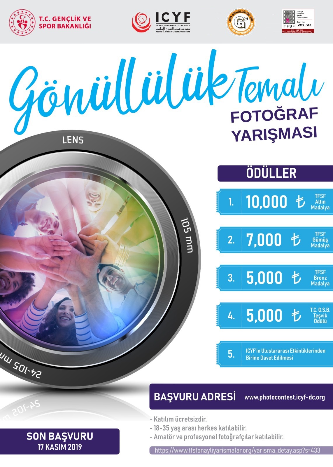 Gençlik ve Spor Bakanlığımızca 2019 için ilan edilen Gönüllülük Yılı çerçevesinde ilgili Bakanlık ve İslam İşbirliği Teşkilatı'nın gençlik alanındaki bağlı kuruluşu İslam İşbirliği Gençlik Forumu (ICYF) arasında 11 Mart 2019 tarihinde imzalanan İşbirliği Protokolü kapsamında Türkiye Fotoğraf Sanatları Federasyonu'nun (TFSF) katkılarıyla "Gönüllülük" Temalı Uluslararası Fotoğraf Yarışması düzenlenmektedir.