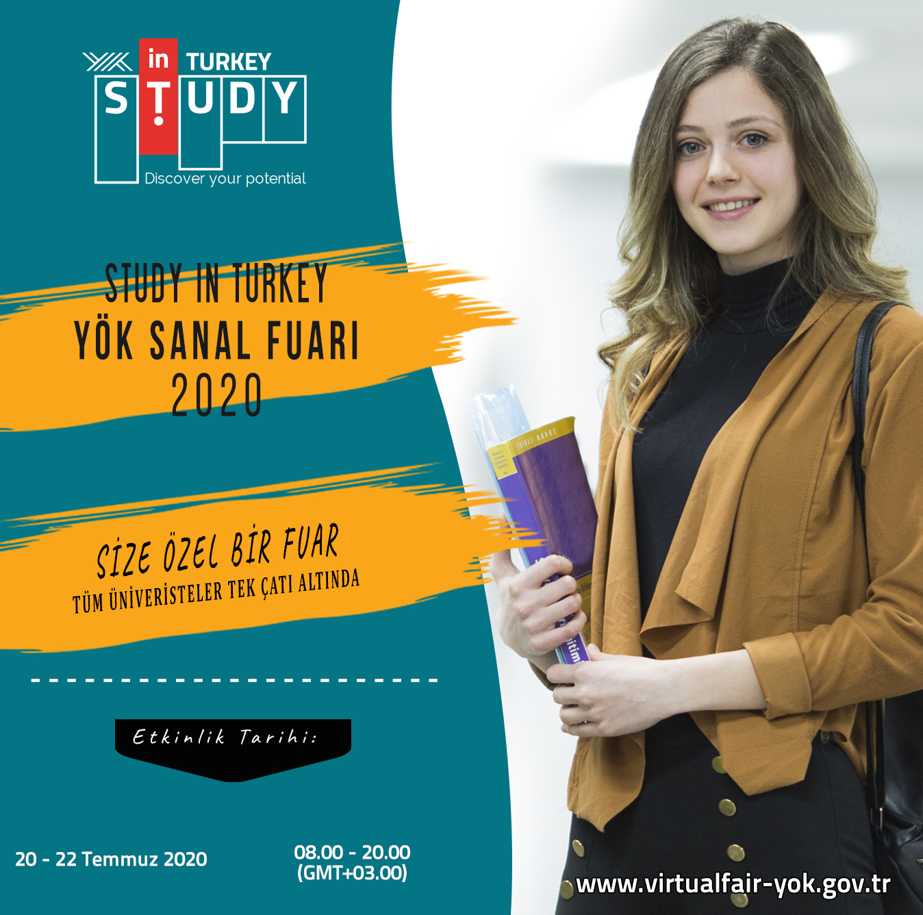 Yükseköğretim Kurulu (YÖK) Başkanlığı tarafından 20-22 Temmuz 2020 tarihlerinde ilk “Study in Türkiye YÖK Sanal Fuarı 2020” düzenlenecektir. Fuar "www.virtualfair-yok.gov.tr" internet adresi üzerinden ziyaret edilebilecektir. 200’den fazla üniversitemizin katılacağı fuarda, üniversite temsilcileriyle çevrimiçi ortamda tanışmak, ücretsiz akademik danışmanlıktan faydalanmak, burs imkanları, yurt/konaklama tesisleri ve dil eğitim merkezleri hakkında bilgi edinmek mümkün olabilecektir.